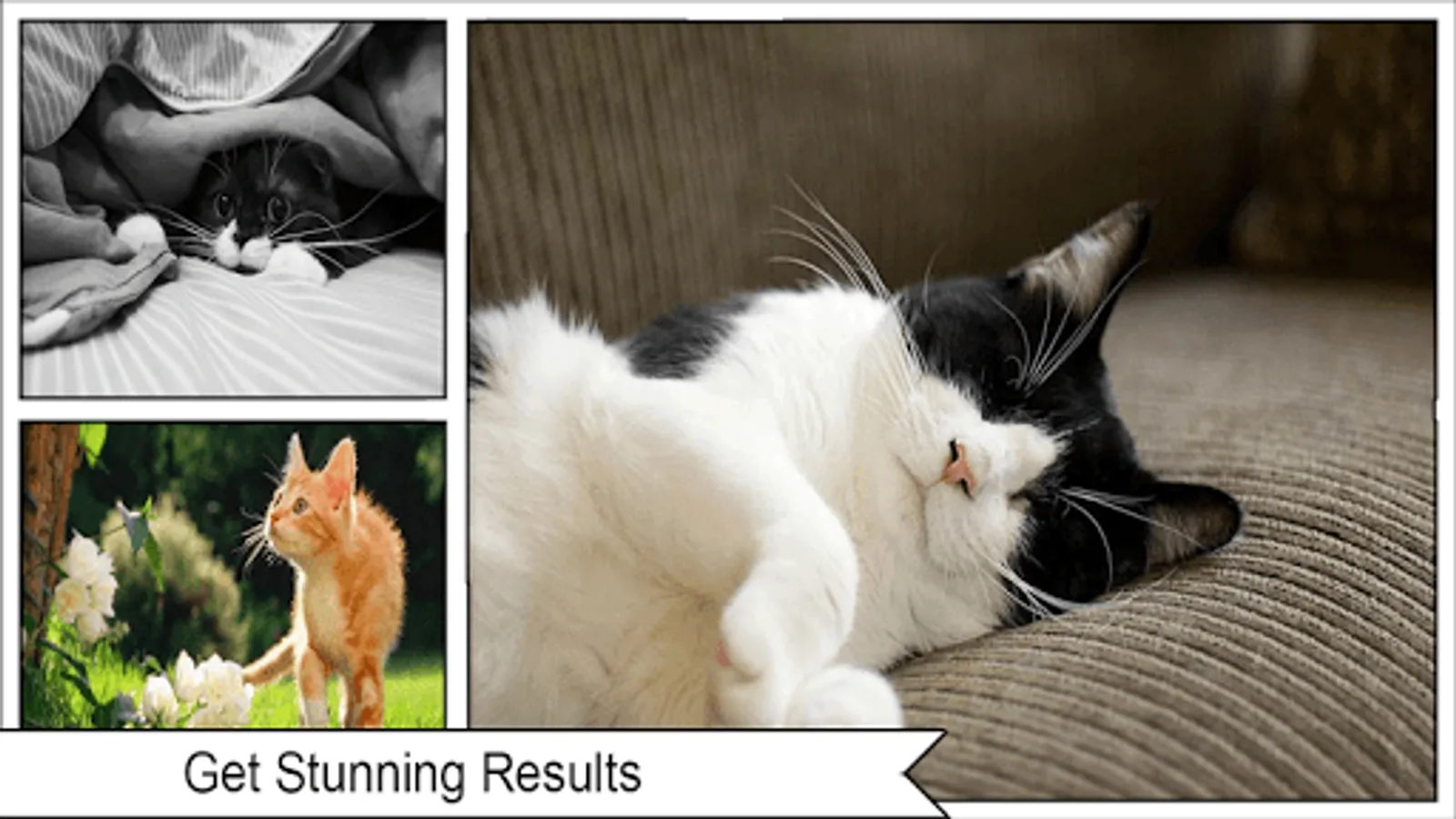 This app features stunning photographs of cats from cute cuddly kittens to strong sleek adult cats The images highlight different breeds of cats which have unique fur colors and patterns from tabby to tortoise shell to siamese You'll find close ups of cats that show their unique and beautiful eyes whiskers and coat as well as many gorgeous shots of cats relaxing in nature perhaps lounging in the sunshine or keeping watch from the perfect tree branch perch
