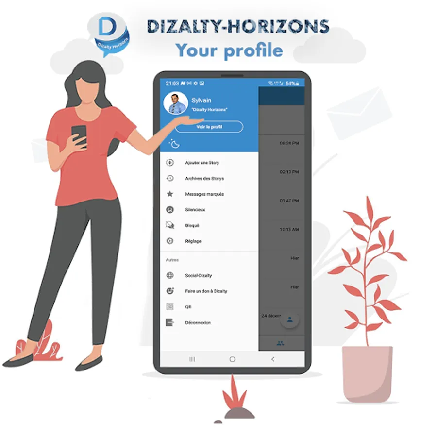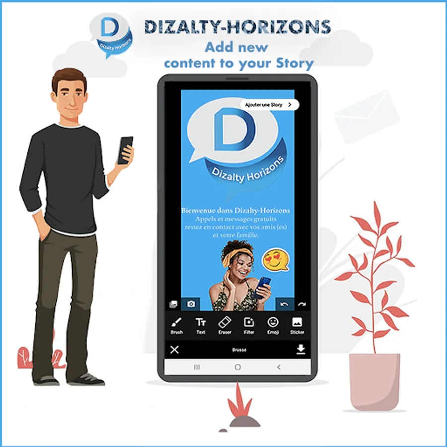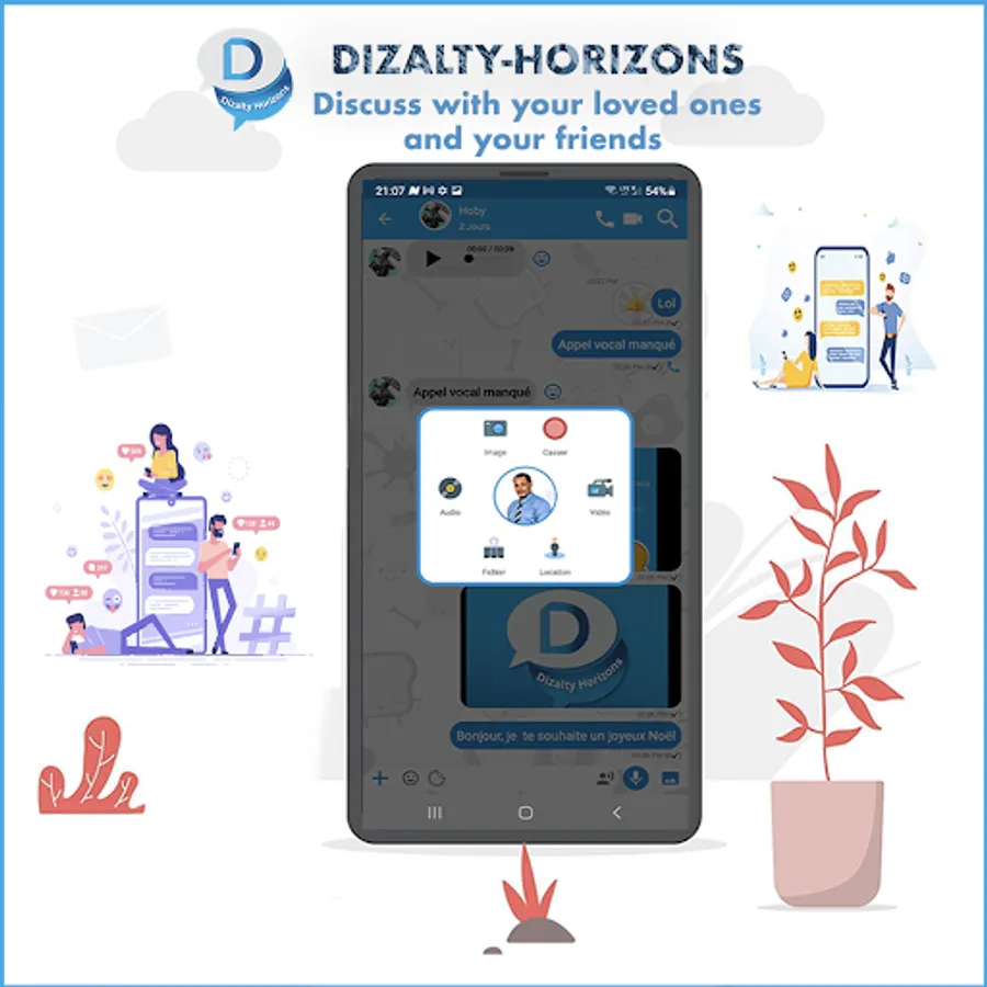 Dizalty-Horizons is a FREE messaging application available on Android and other smartphones. From well your phone you can send messages and call your friends and family and colleagues. You can receive messages, calls, photos, videos, documents, and voice messages.