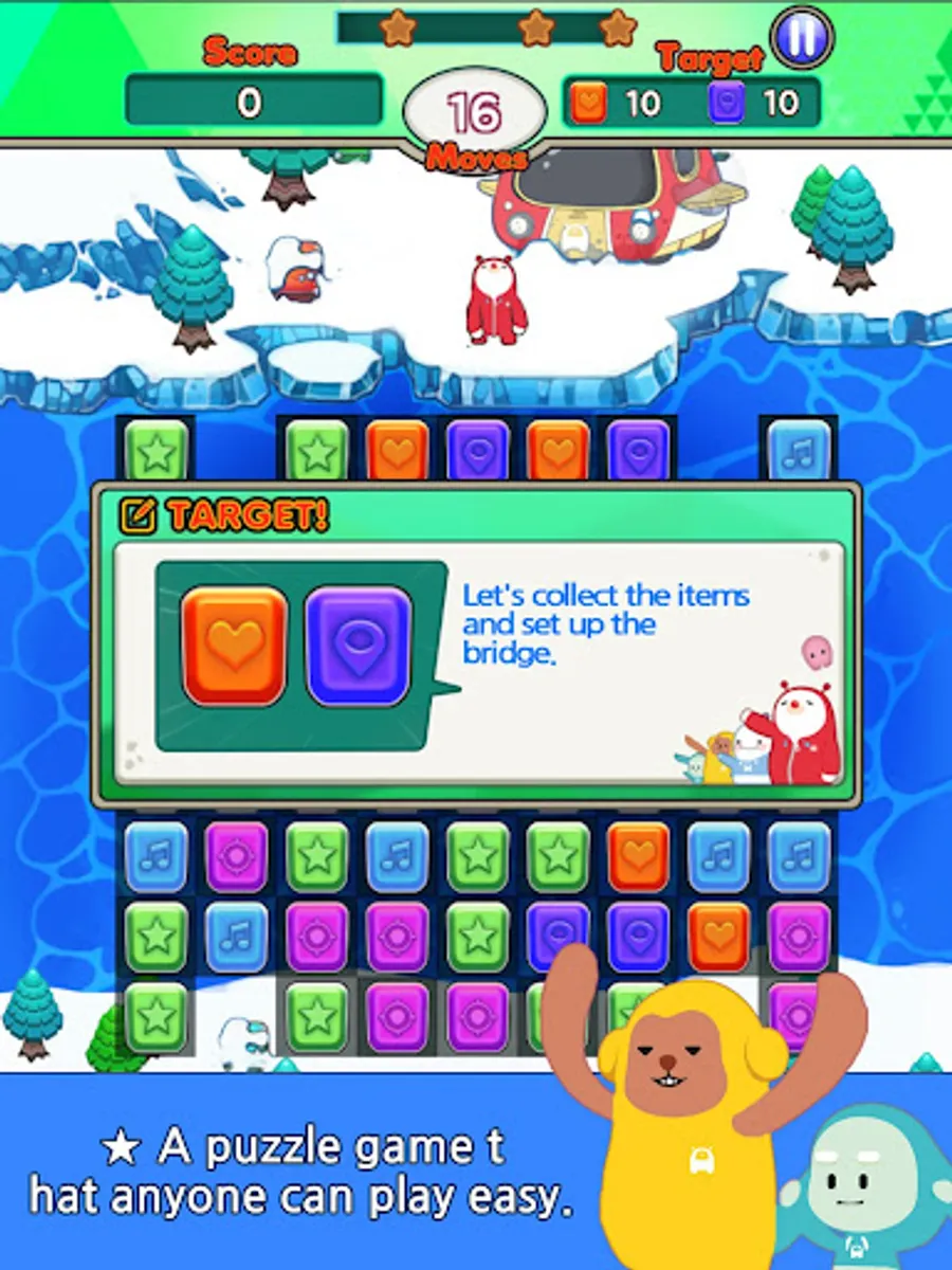 Play the free three-match puzzle game "AtoPangPang" to help 'Ato' and his friends go on a space trip.