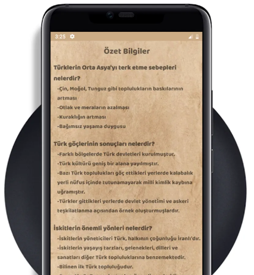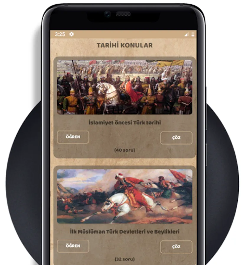 There is a learning area within the application. The learning area has been prepared as a summary of the topics. We also have a test area to test yourself.