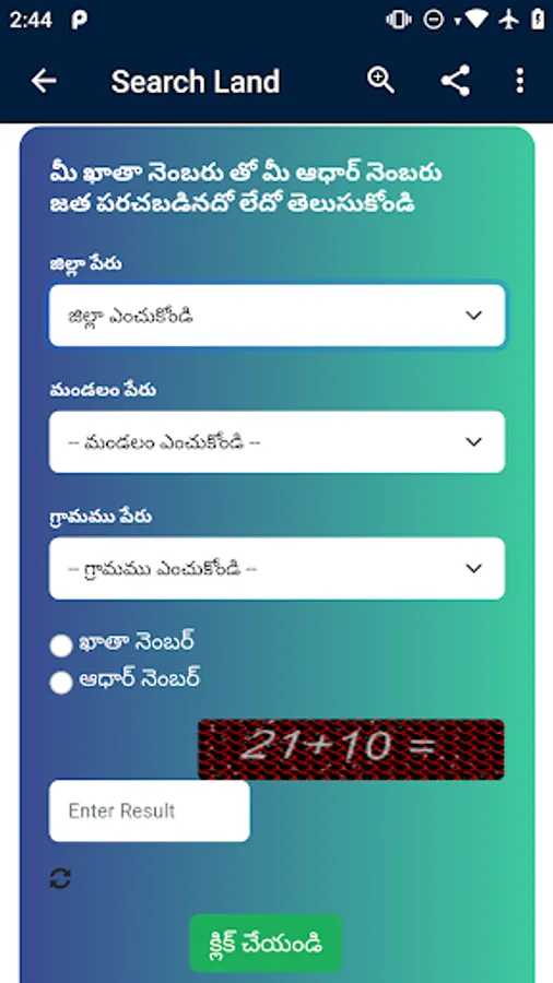 A faster way to find the Your Adangal, Village Adangal, your 1-B, Village 1-B and other land information of MeeBhoomi Andhra Pradesh. Beside that it also has some other features like Village map and related land information. After the see the record you can save those record as pdf with the help of print manager that is used here.