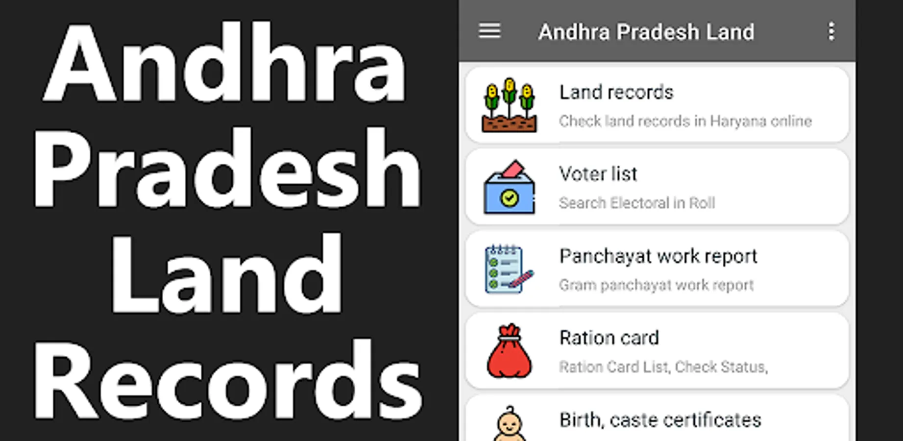 AP 1B land records, Land records Aadhaar Card linkages, Electronic passbooks, Crop types grew in land Meebhoomi Adangal Survey, Survey number, Patta Names, Pattadar Passbook Statistics, Mee Seva and Meebhoomi issue report, AP FMB (field measurement book), Village landlords List.