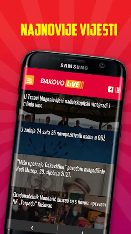 Besplatna aplikacija ĐAKOVO LIVE prilagođena za mobilne i tablet Android uređaje omogućava vam da budete informirani u svakom trenutku, bilo gdje da se nalazite. Direktno sa platforme ĐAKOVO LIVE pratite najnovije vijesti, najave događanja i video reportaže iz Đakova i okolice putem Push notifikacija. Vijesti na aplikaciji se ažuriraju svakodnevno.