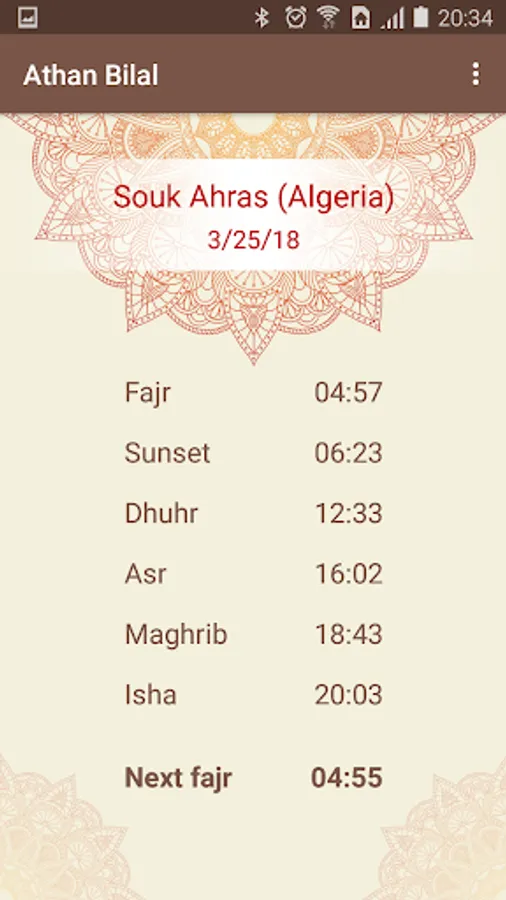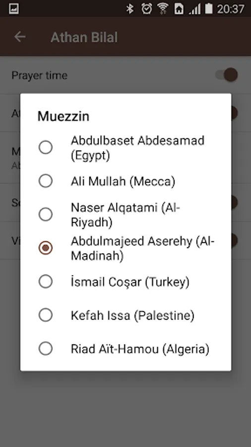 Athan Bilal is a free open source software that is gratis, without ads and respects user privacy. It does not collect user data and send it to any party. It calculates Muslim prayer times for thousands of cities, with different methods (Umm Alqurra , Muslim World League, Egyptian Survey Authority, Karachi Islamic University, ISNA, UIOF, Kuwait Ministry of Awqaf). It contains the voice of 7 famous Muezzins (Abdulbaset from Egypt, Ali Mulah from Mecca, Asehery from Medina, Alqatami from Riyadh, Ismail Cosar from Turkey, Kefah Issa from Palestine and Riad Ait Ahmou from Algeria), with a Fajr version for every Meuzzin. It supports Arabic and English and works without Internet connection on most Android versions including the recent ones.