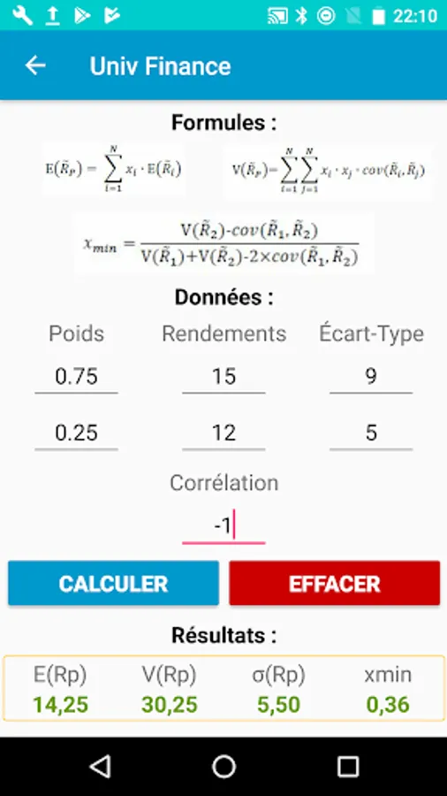 With this application, you can calculate quickly portofolio return, standard deviation and others finance concept !