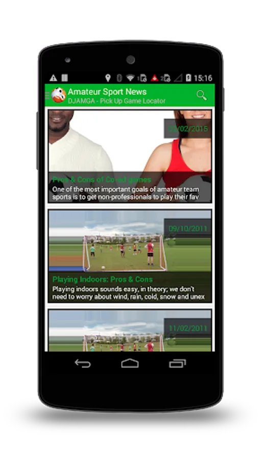 Djamga is a Pick Up Games Locator, and Amateur Sports Hub app.