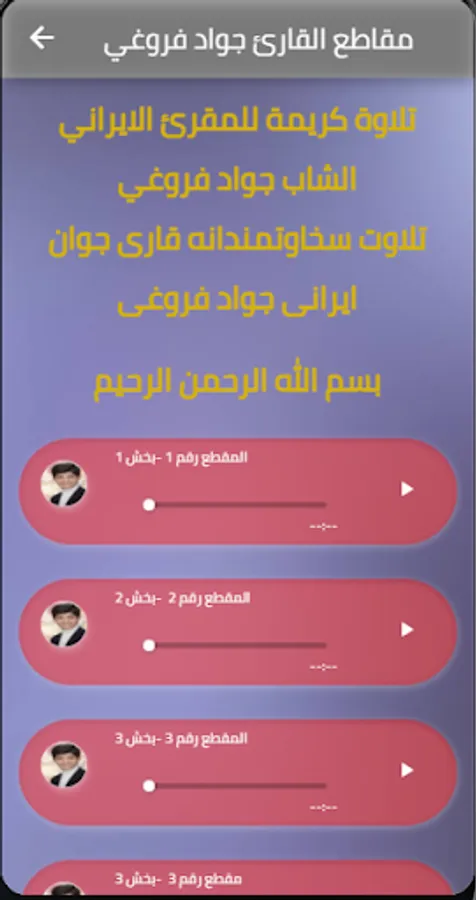Listen to the most beautiful audio clips of the recitation of the verses of the Holy Quran in the application of Javad Foroughi Qari of the Holy Quran and