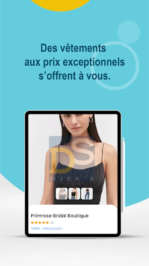 Welcome DJEK'S, a mobile application specializing in the sale of clothing and fashion accessories for children, women and men. We offer a wide selection of high quality products for all tastes and budgets.