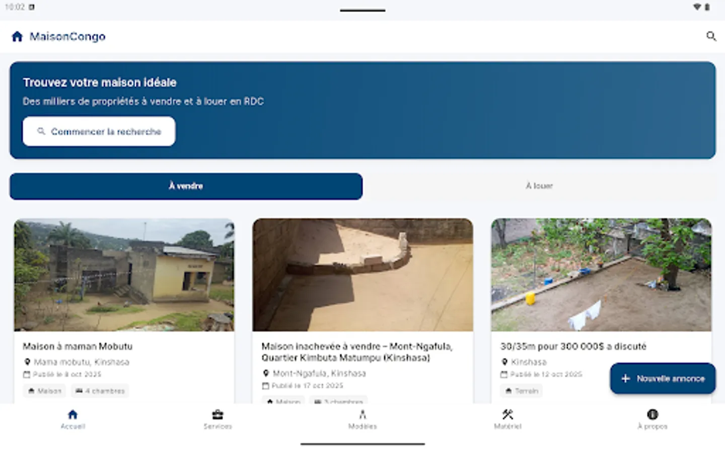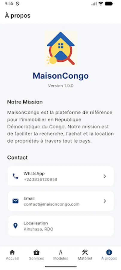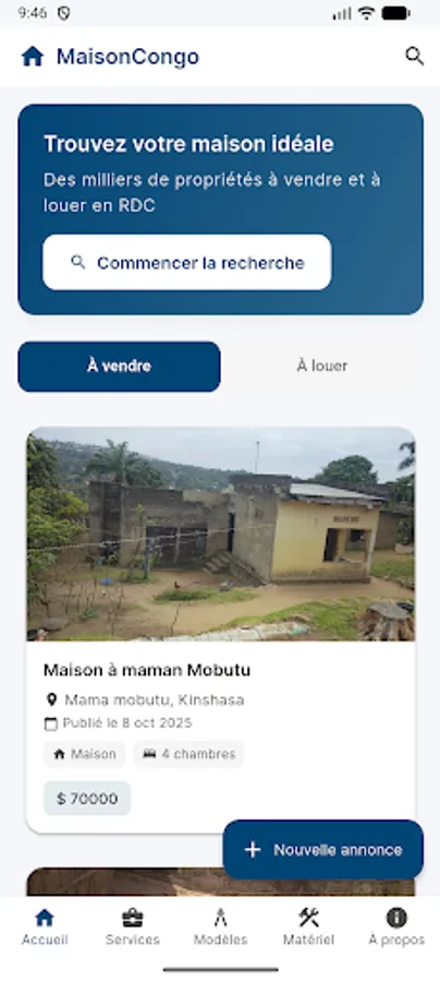 MaisonCongo is modernizing real estate in the DRC by making the search faster, simpler, and more transparent. Whether you're looking to rent, buy, or sell, the app guides you every step of the way with an intuitive interface and 24/7 support via WhatsApp.