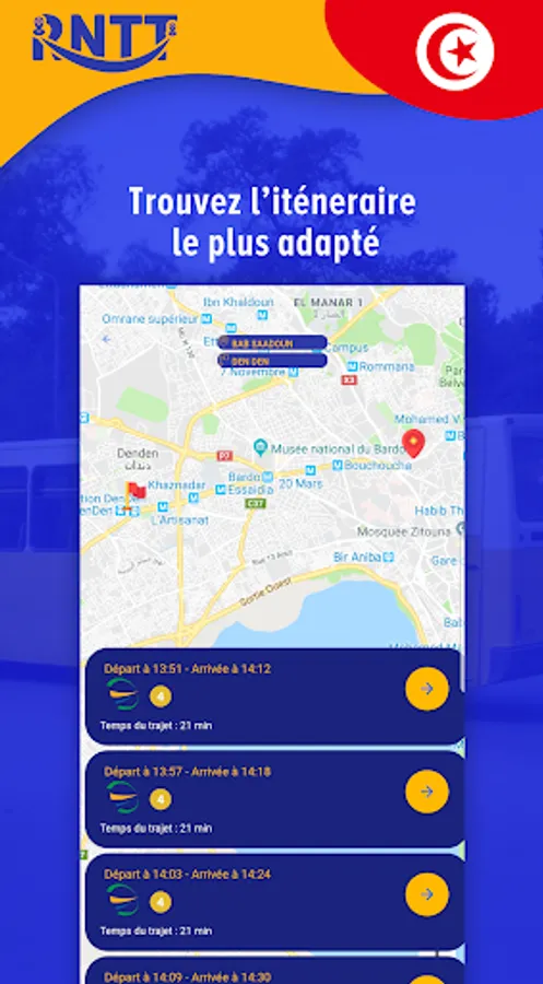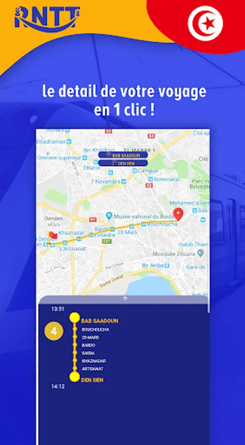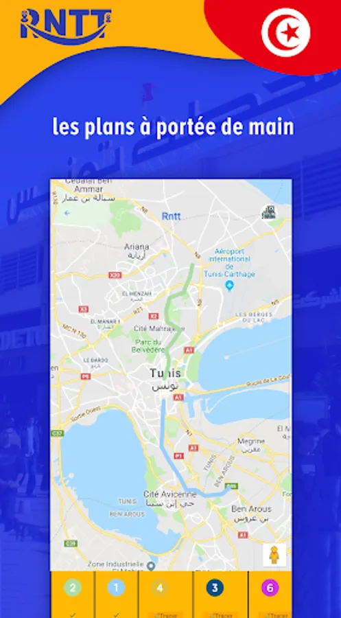 Find in the application "RNTT" all the information on your travels in Tunisia.