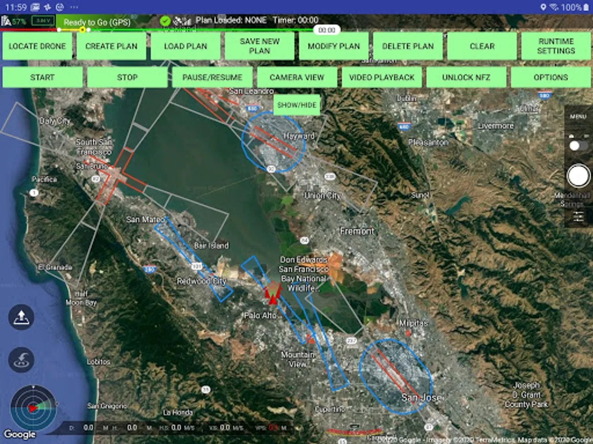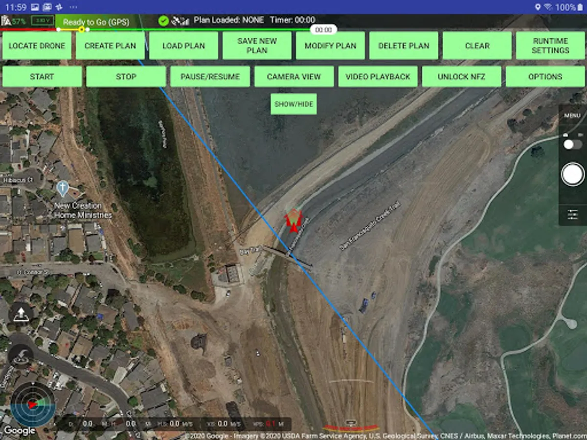 The software’s intuitive Android-based Google Maps interface is used to easily and quickly create single, multi-point and orthomosaic mapping mission plans. The DroneMagic App includes four (4) mission operating modes: