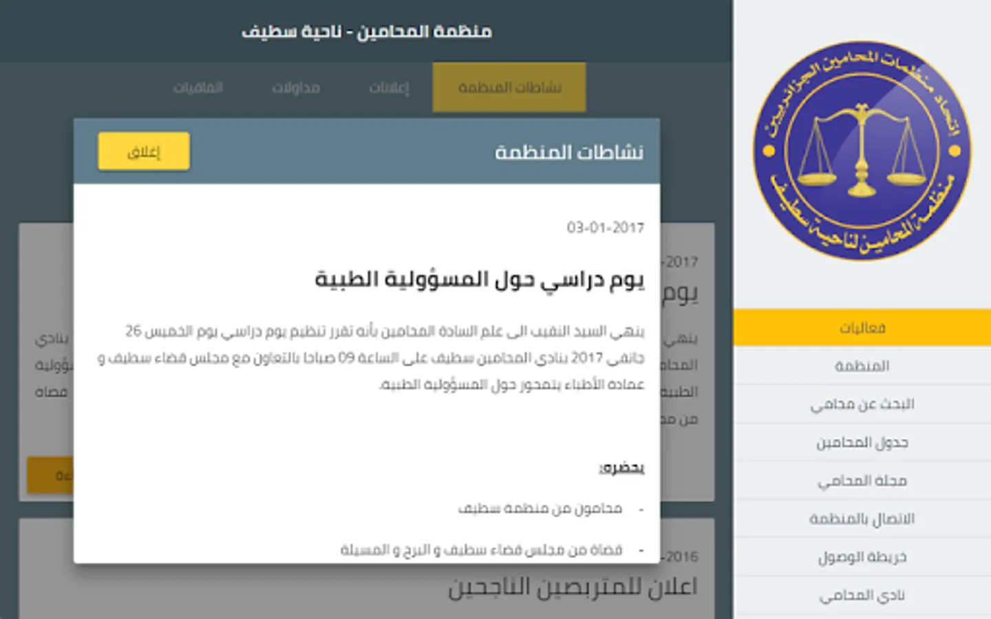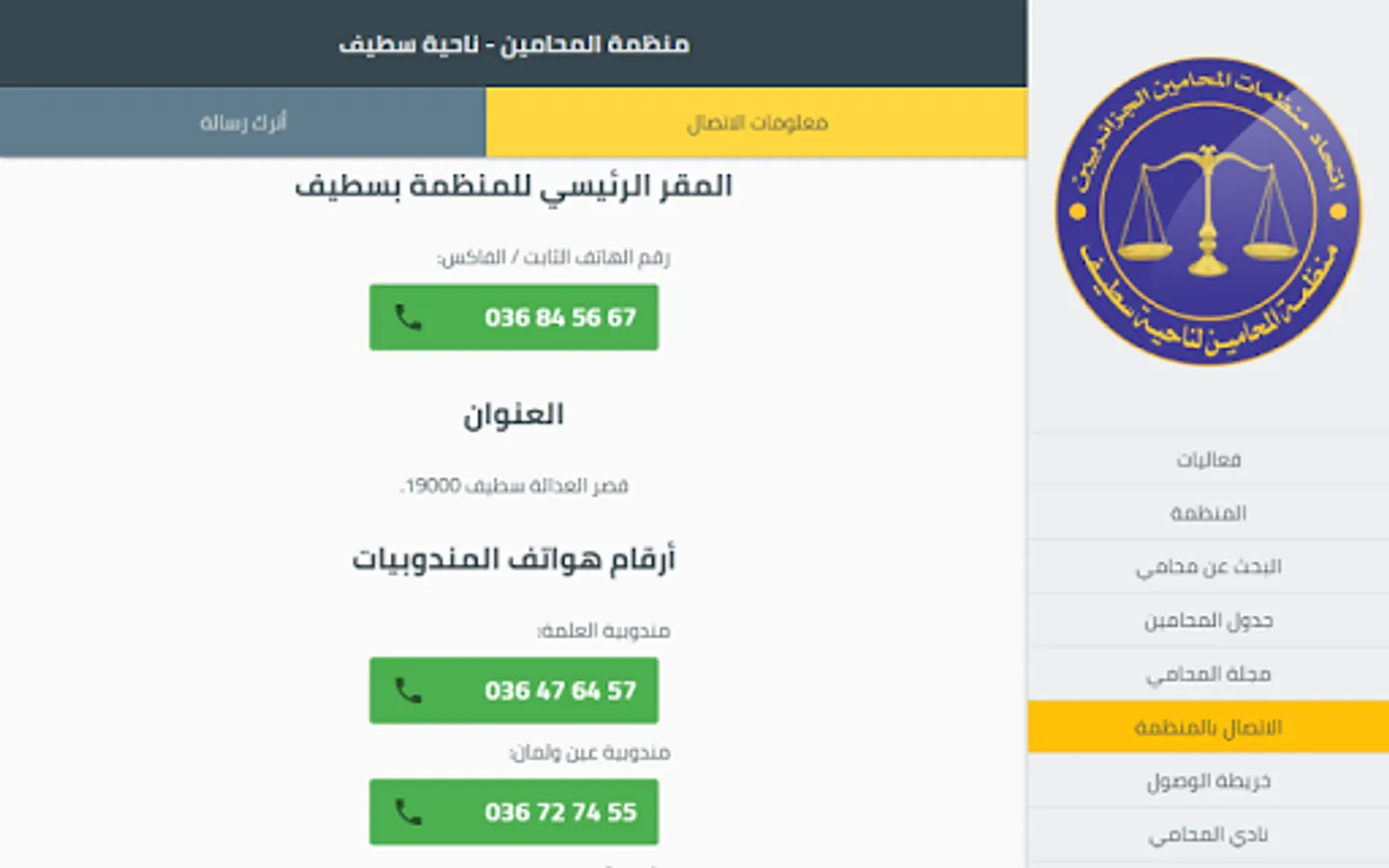 - Maps access to lawyers and the headquarters of the Organization of the lawyer Setif.