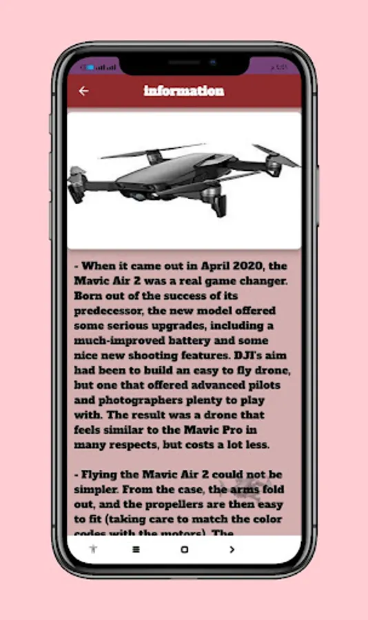 An app Dji Mavic Air 2 that gives you information about Dji Mavic Air 2