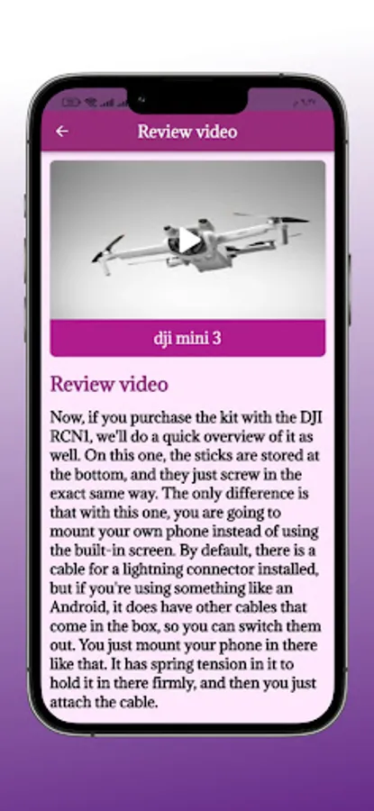 The application contains dji mini 3 guide applications, where through the application you can quickly learn how to use dji mini 3 easily through explain video and images