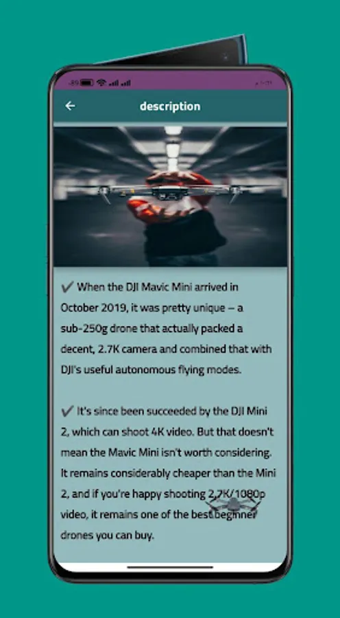 Where you can get and access all the features, specifications and inboxing of the wonderful Dji mavic mini box through the application. There is also a quick review through pictures and a review of the Dji mavic mini guide through a PDF file easily through the application,