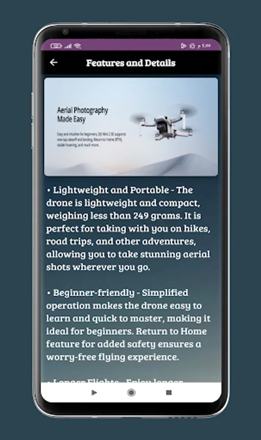 In Dji Mini 2 SE Fly Guide app we supported many sections of content that will let you now more information about Dji Mini 2 SE Fly Guide