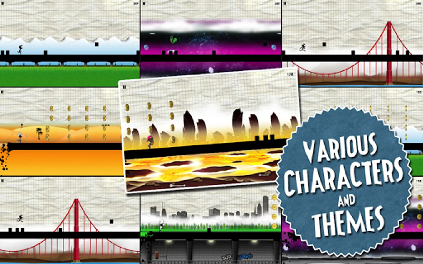 • From the makers of various top 100 apps like Stickman Base Jumper, Stickman Cliff Diving, Stick Stunt Biker, Rope'n'Fly, Wingsuit Stickman, Line Birds, Line Surfer, RunStickRun and more