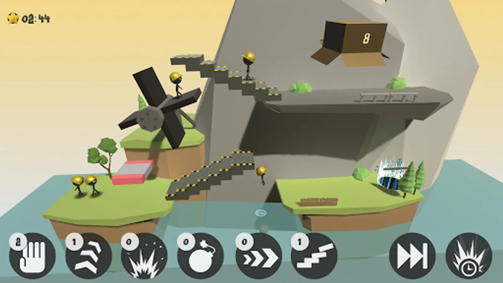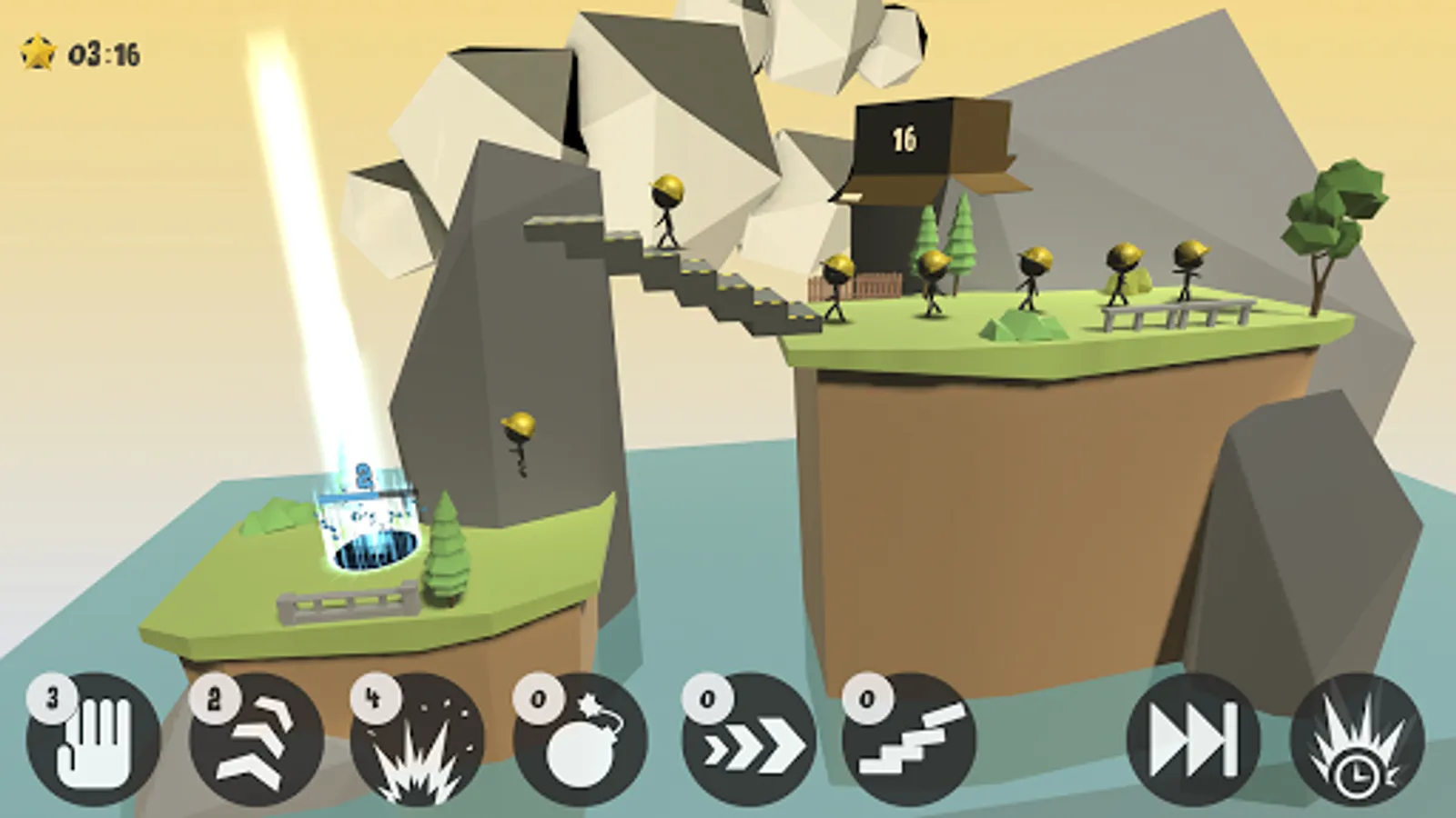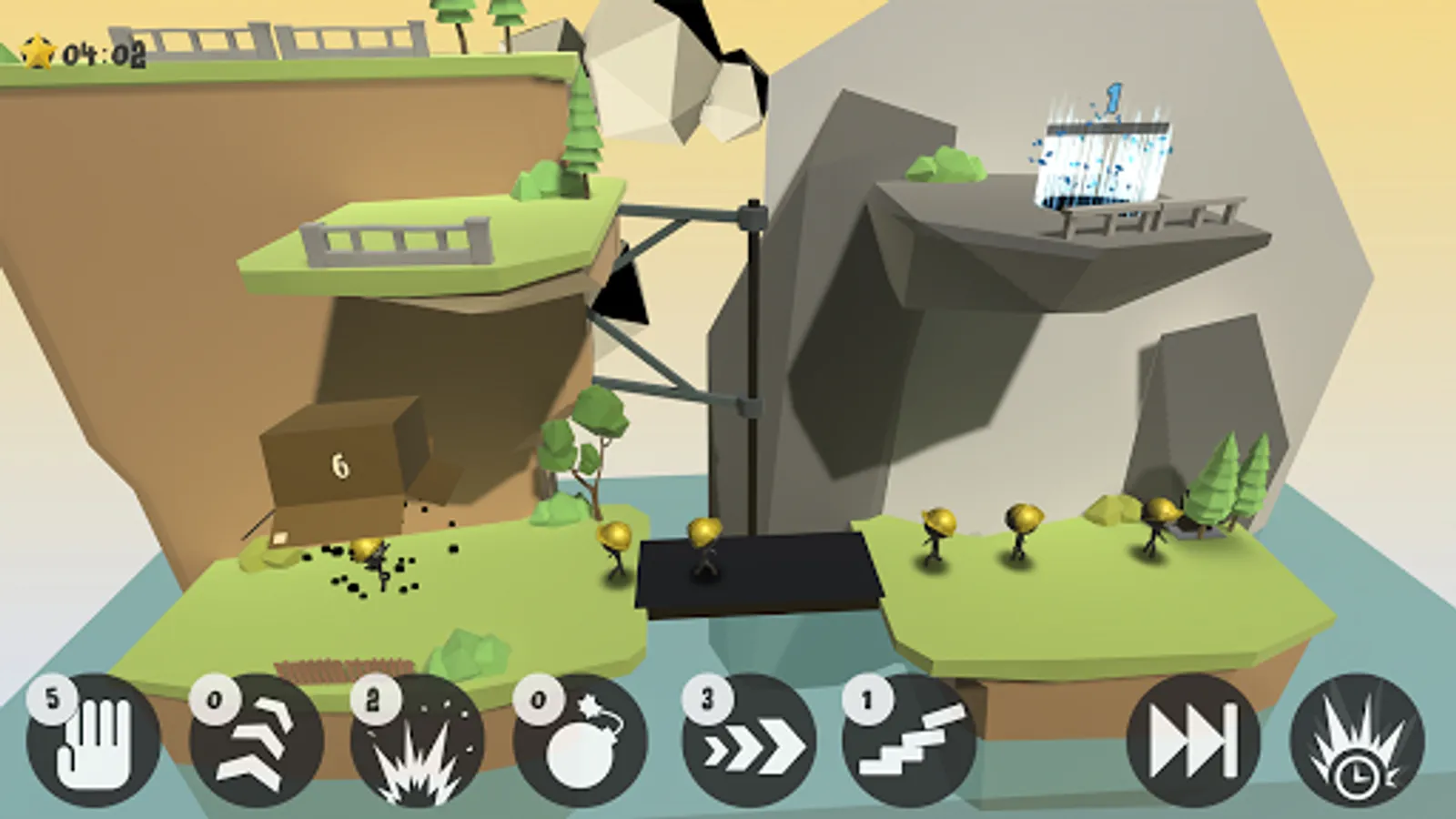 Sticklings Deluxe is a unique puzzle game with the mission to lead a herd of Stickmen into their goals by using various abilities. Like a lemming, a Stickling just walks and walks and it is your objective to correctly assign the correct task to a Stickling to lead all the others the correct path. Abilities include blocking, self destruction, jump, bomb throwing, rush and bridge building. Try to earn as much gold, silver and bronze medals as possible. Oh, and by the way, if you fail there is always the option to nuke them!