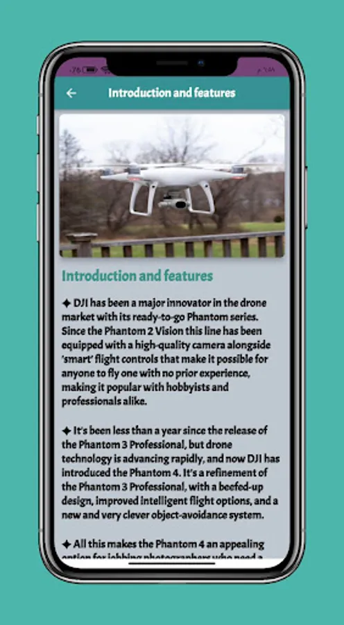 An app Dji phantom 4 that gives you information about Dji phantom 4