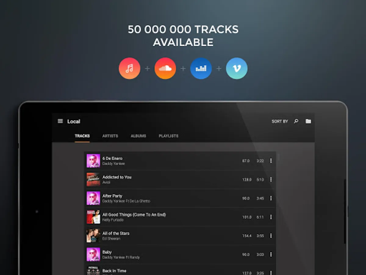 - Access more than 50 million tracks thanks to the integration of Deezer, Soundcloud and Vimeo streaming music sources