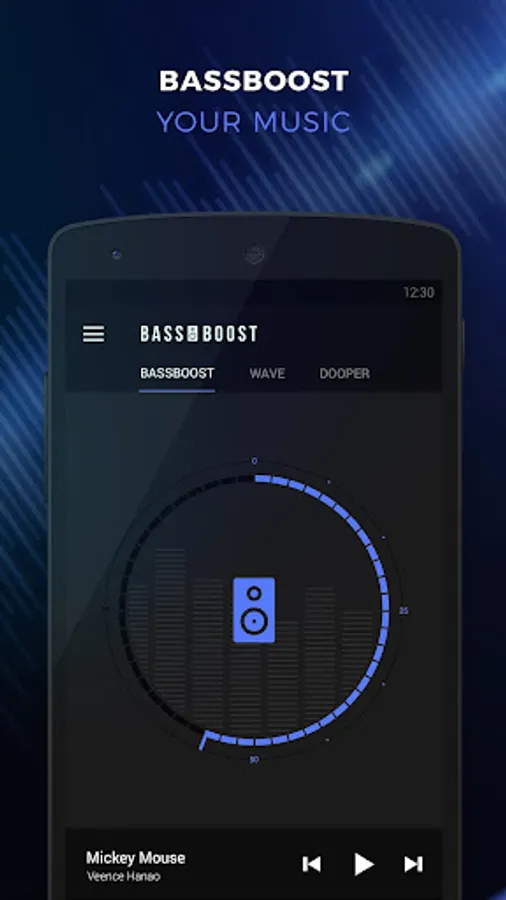 Bass Booster will amplify your bass at a maximum and provide you with a better quality sound wherever you are! Just turn on your music player and open Bass Booster. Click on the “speakers” icon and adjust the bass level as you like. You immediately get a clearer and stronger bass sound. Bassboost your sound and boost your music volume!