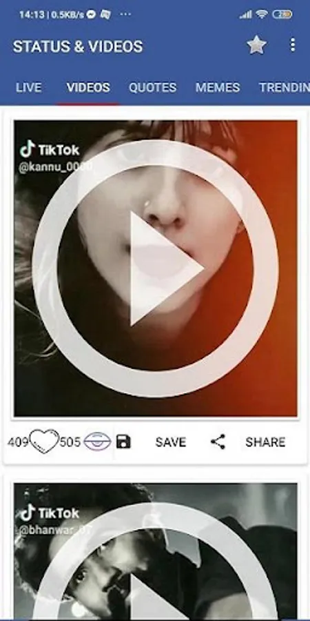 ๐ธ Video Tab: - Contains a lot of Roposo videos status and many more. You can download and share the video status with your friends and family.