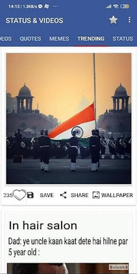 ๐ธ Trending Tab: - Give you daily updates of trending Status, Video Status, DP and Shayari
