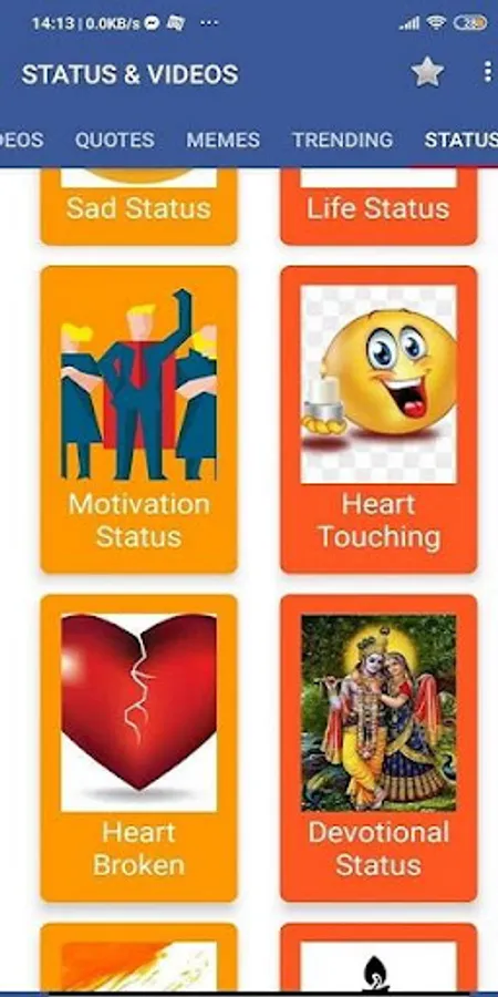 ๐ธ Status Tab:- Contains the category wise selected Status so that you can choose Status according to your taste.