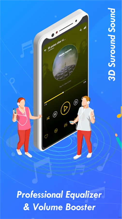 3D Music Equalizer is a volume slider with five band Equalizer with Bass Boost and Virtualizer effects.