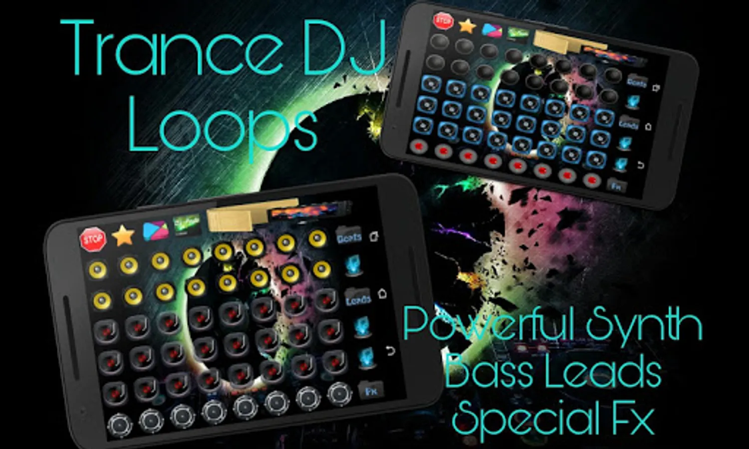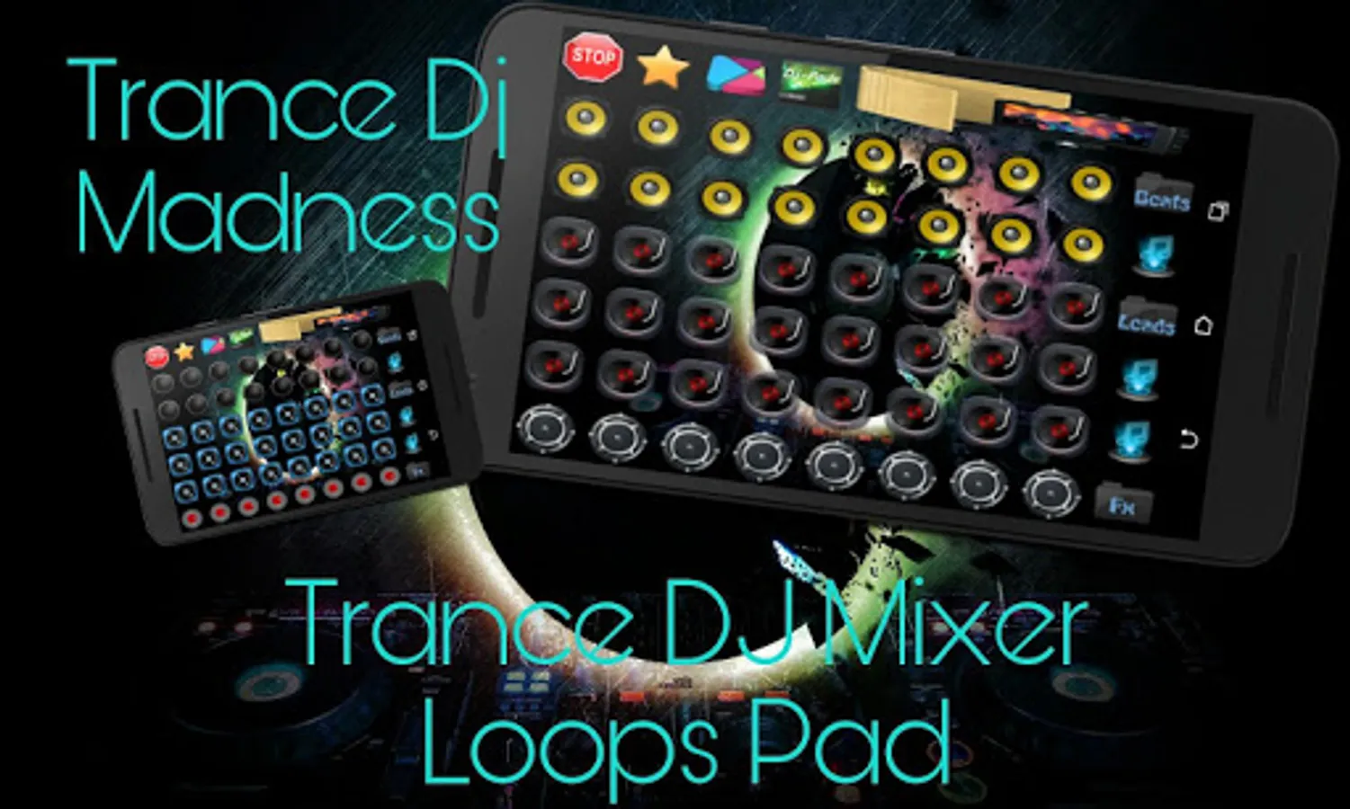Electronic Trance Dj Pad Mixer, Electronic music with powerful Dj Loops, electro music beats and electro trance loops, Recording options, make music, make Dj loop mixes and share with friends, Remix loops together and make your Dj music loops. Create you Dj music mixes, Be real Dj and make your party. Create music and make Ringtones.