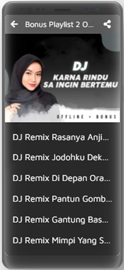 With just one installment of the DJ Karna Rindu Sa Want to Meet Offline + Bonus application, you can enjoy as many songs as you want without fear of running out of internet quota.