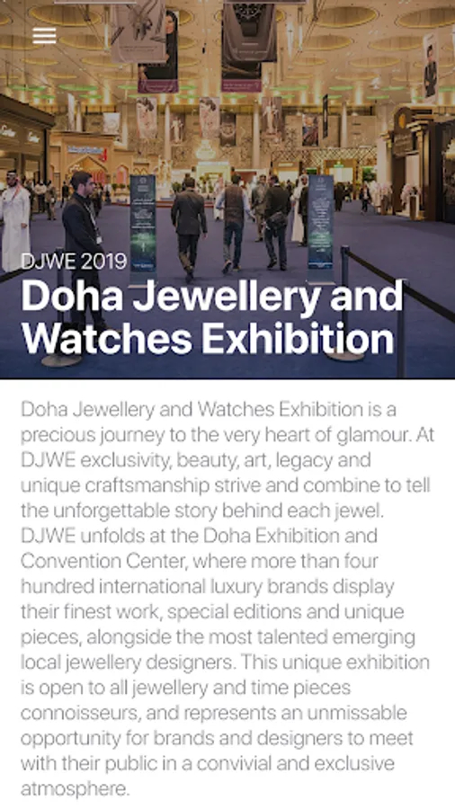 Doha Jewellery and Watches Exhibition is a precious journey to the very heart of glamour. At DJWE exclusivity, beauty, art, legacy and unique craftsmanship strive and combine to tell the unforgettable story behind each jewel.