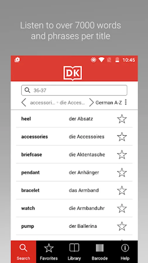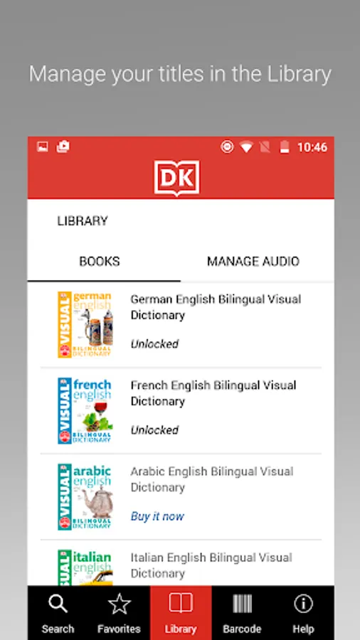 DK Bilingual Dictionary Audio App: a complete audio version of DK's Bilingual Visual Dictionaries.