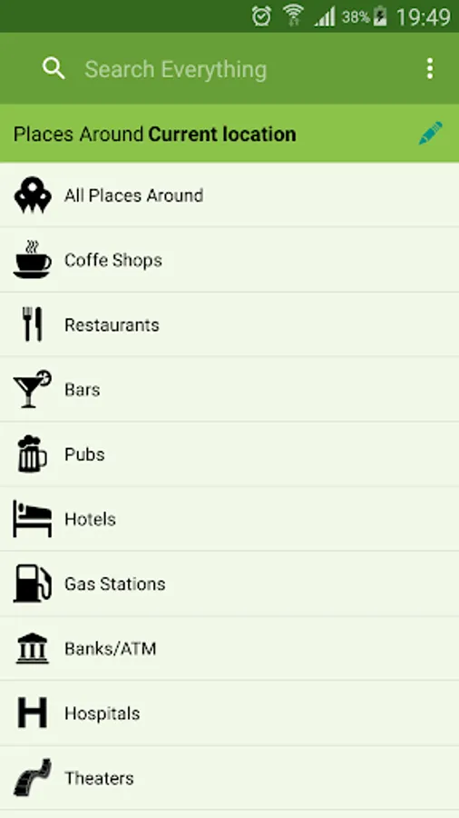 ★ Quickly find nearby Restaurants, Bars, Banks/ATMs, Gas-Stations, etc.