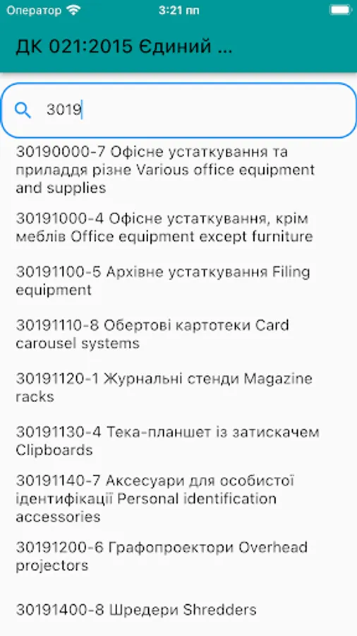State classifier 021:2015 Unified procurement dictionary. Allows you to quickly and conveniently find the required purchase code and go to the ProZorro site to view similar purchases.