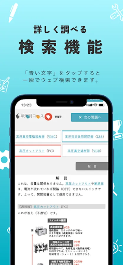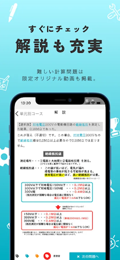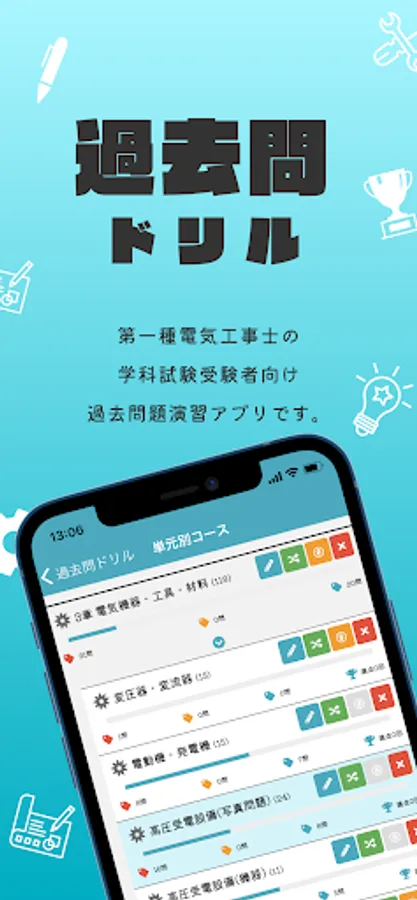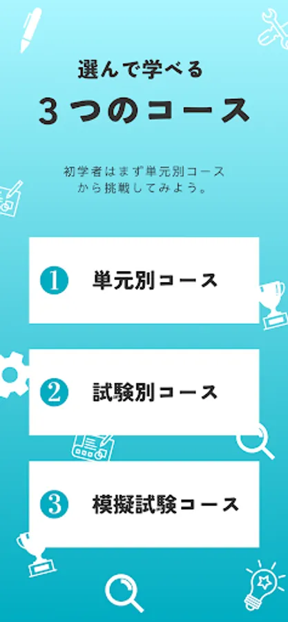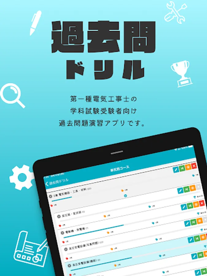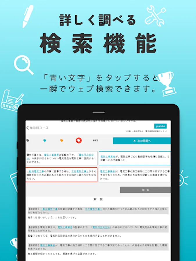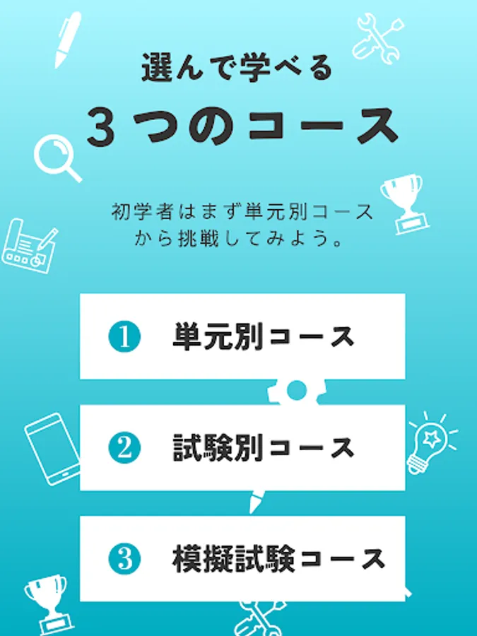 ・ "Unit-specific course" allows you to solve past problems by dividing them into units. Understanding is surely deepened by solving similar problems such as calculation problems and legal problems together.