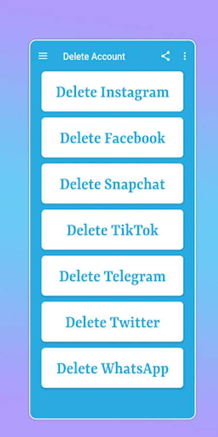 Delete Account app give you a short description for delete tiktok or whatsapp account permanently.