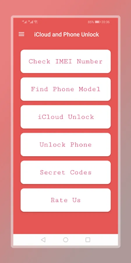 icloud and phone unlock is android application which help user to check imei number and phone model. This app help also unlock your phone ( Samsung, iPhone ... ) via imei for the lowest price.