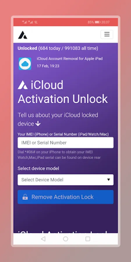 Icloud unlock app give you the best website online that will help you to unlock icloud lock on any iPhone, iPad, iPod or Apple Watch fast and secure.