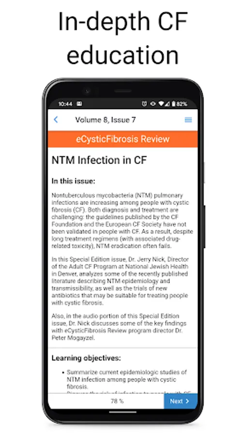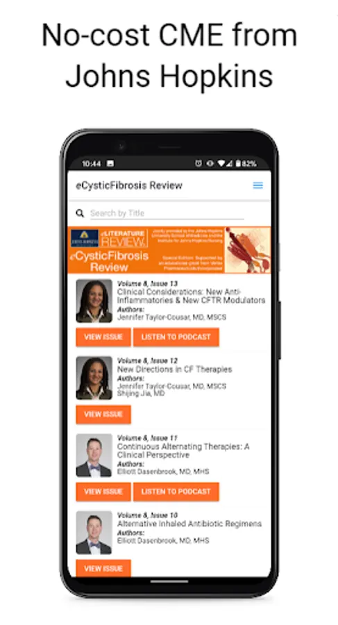 eCysticFibrosis Review is a no-cost CME program developed by Johns Hopkins University School of Medicine (JHUSOM) in partnership with DKBmed. Expert insight and analysis providing information directly relevant to cystic fibrosis care, through topic-focused newsletters summarizing the peer-reviewed literature with accompanying podcasts to illustrate how to apply that information in the clinic.