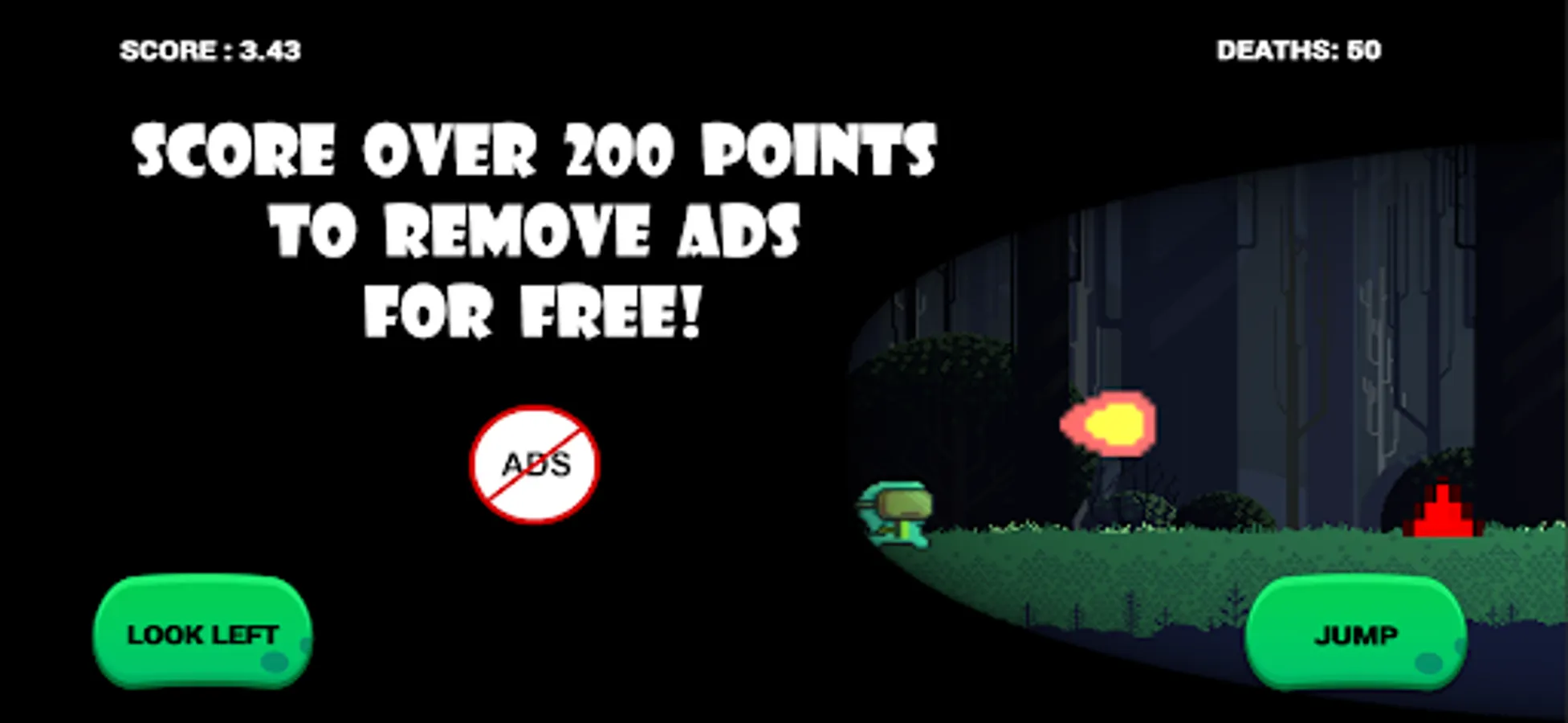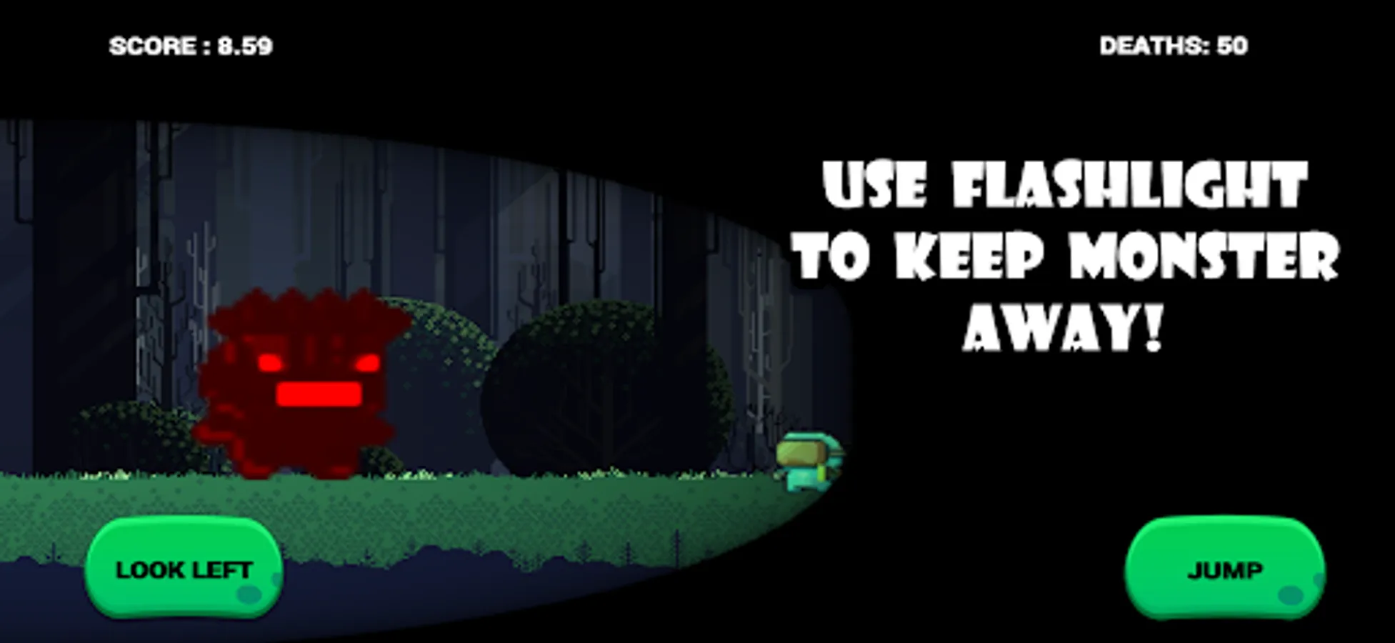 This game will test your reaction time and can also improve your reaction time as well. Use your flashlight to keep monster away and look for incoming obstacles that are coming your way. If you score over 200 points advertisement will be removed for FREE! Score 300 or more to beat the game. Only a true gamer can beat this game. Are you up to the challenge?