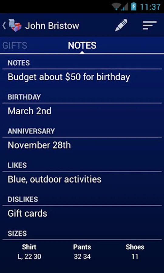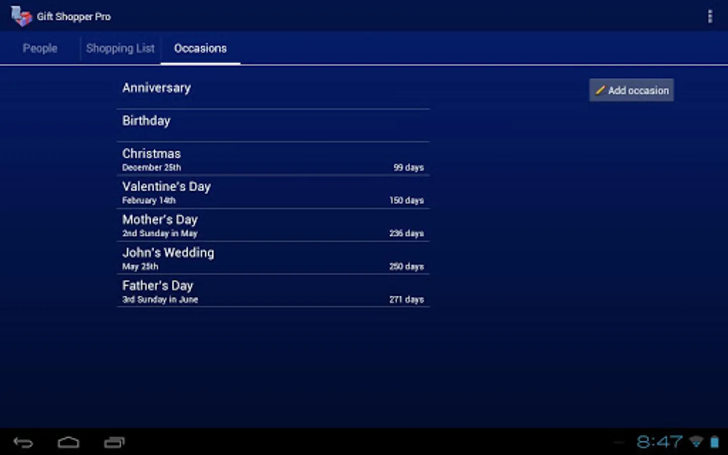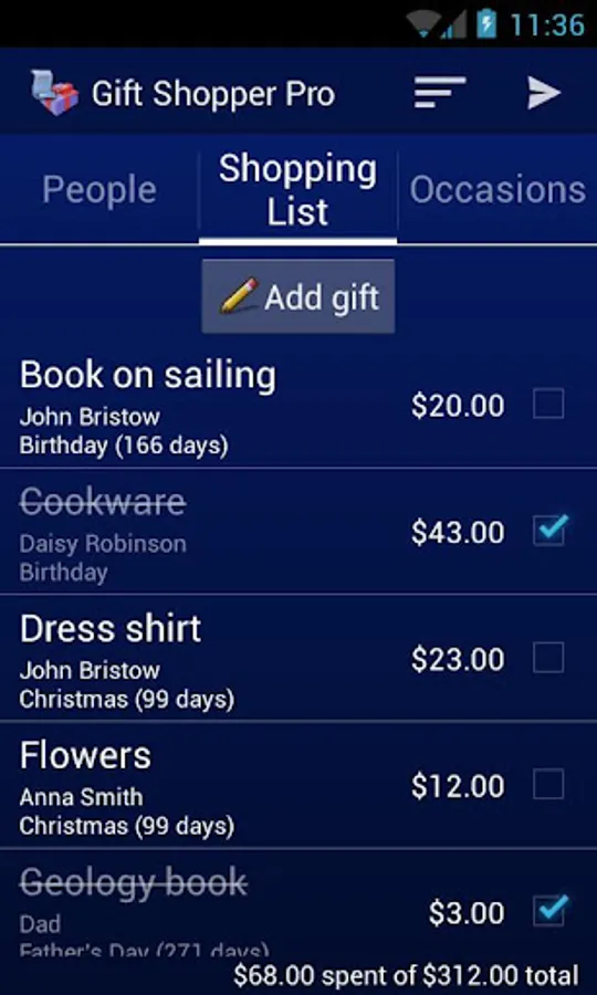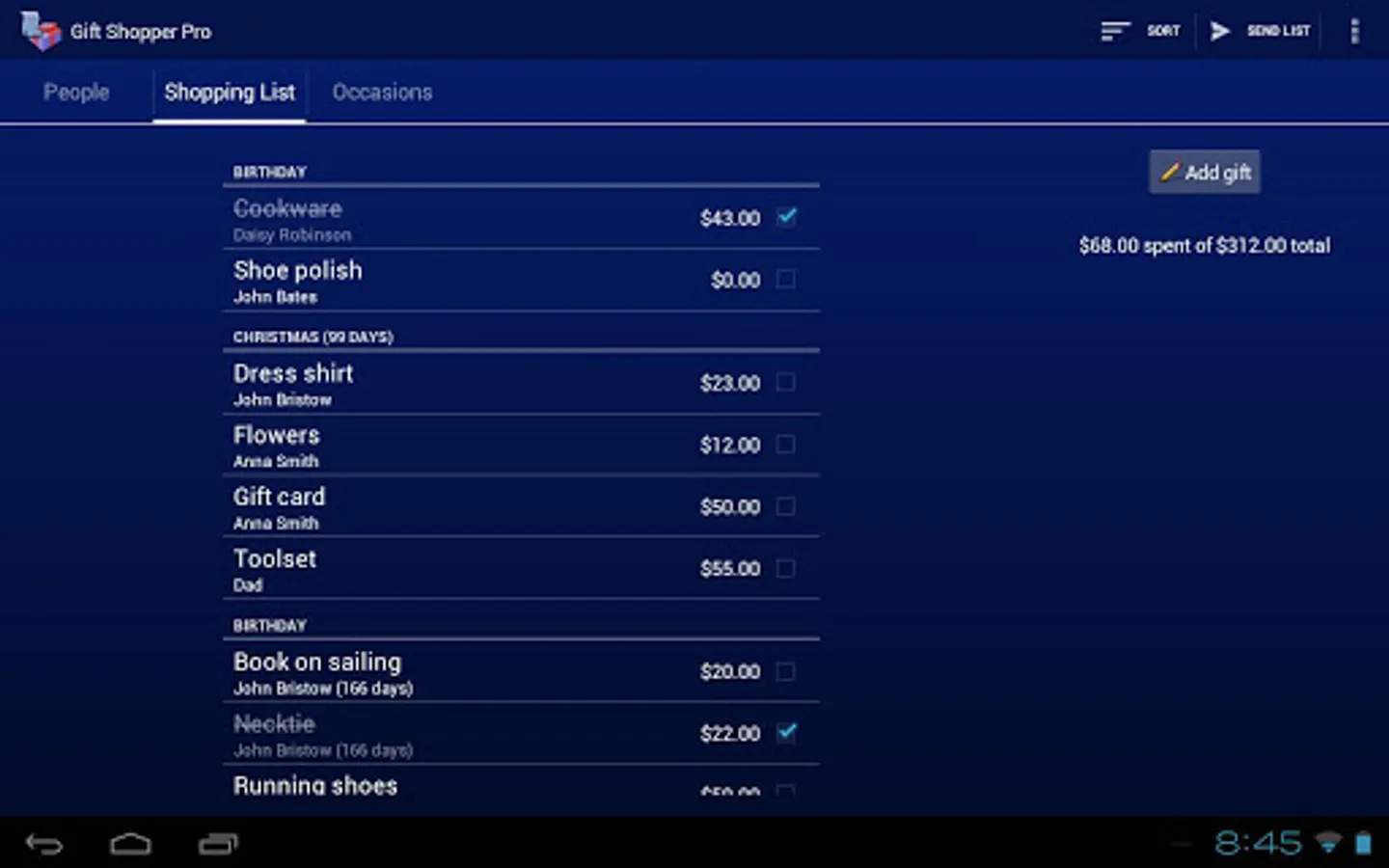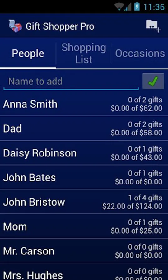 • Add gifts for each person by typing or scanning barcodes. (Barcodes require your device to have a rear-facing camera.)