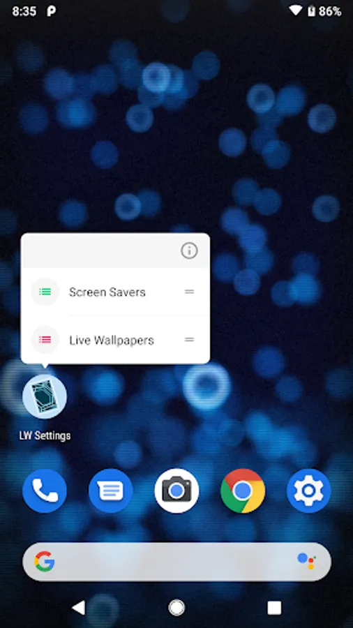 For Android 7.1 and higher, there are also shortcuts to the Live Wallpaper Picker and the Screen Saver picker, available by long-pressing the icon in the launcher.