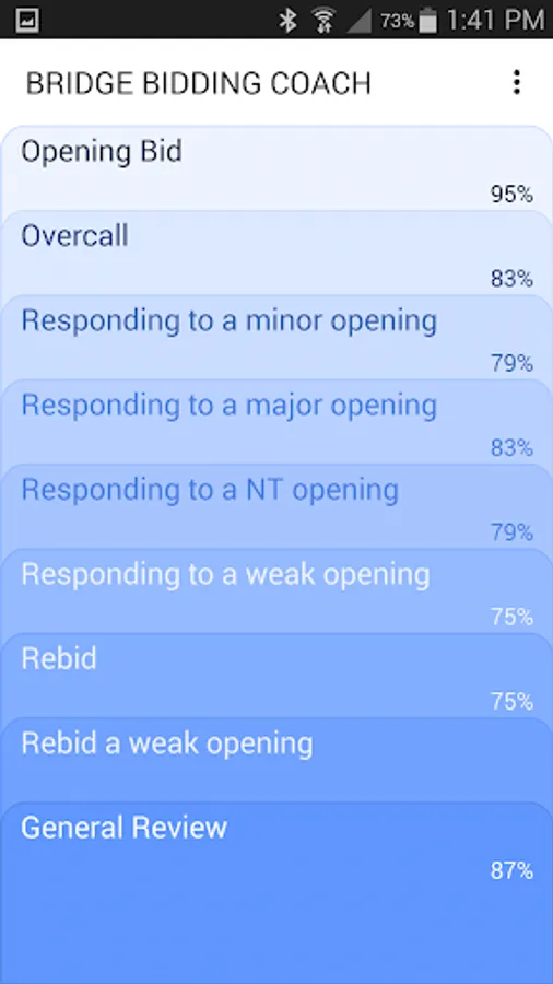Bridge Bidding Coach is your personal trainer, and with it you will learn how to bid the following scenarios to perfection in very little time: