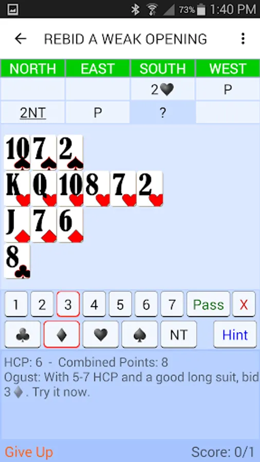 Bridge Bidding Coach is mainly for beginners and novice players who are excited about bridge and want to get better. However if you are a more advanced player, I challenge you to download the app and see if you can get 100% in all 9 practice scenarios (not as easy as it sounds).