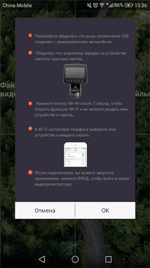 With this application you can connect to the DVR through Wi-Fi system. Fully control the device, change the menu settings. Possible to use in online mode. View, save to your phone, delete the photo, and video files. And also send files to other users through social networks.