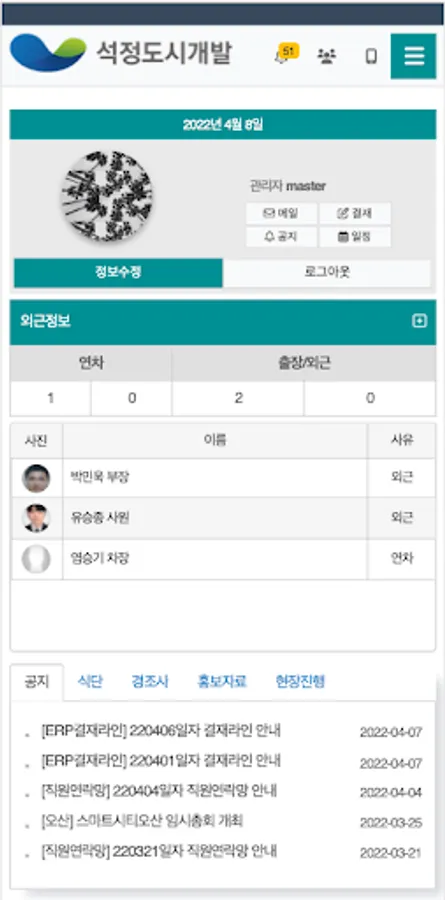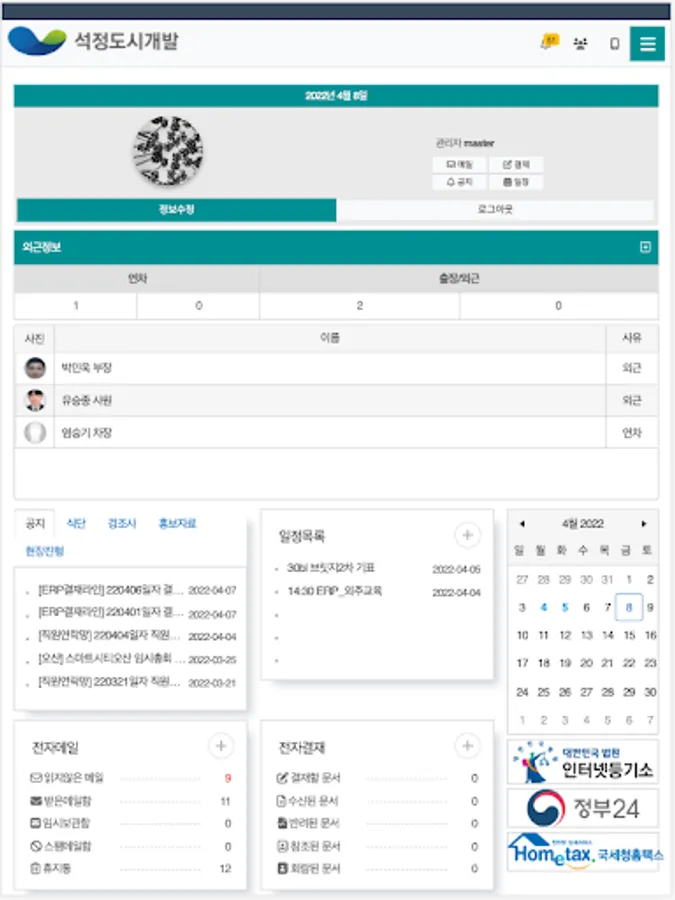 (주)석정도시개발 그룹웨어 Screenshots