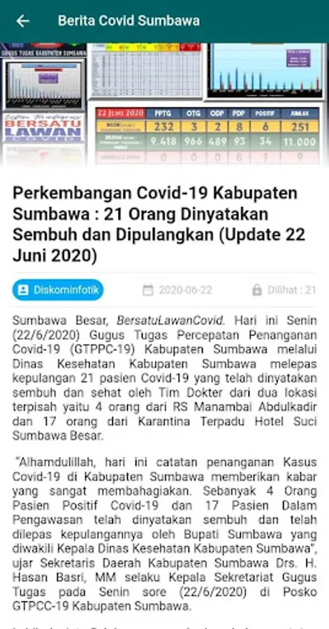 The New Normal Sumbawa application developed by the Sumbawa District Information and Statistics Communication Office.