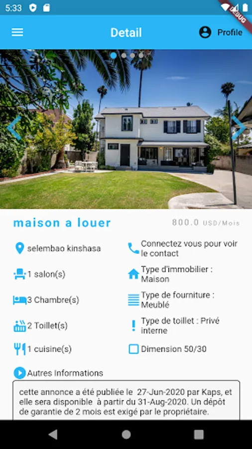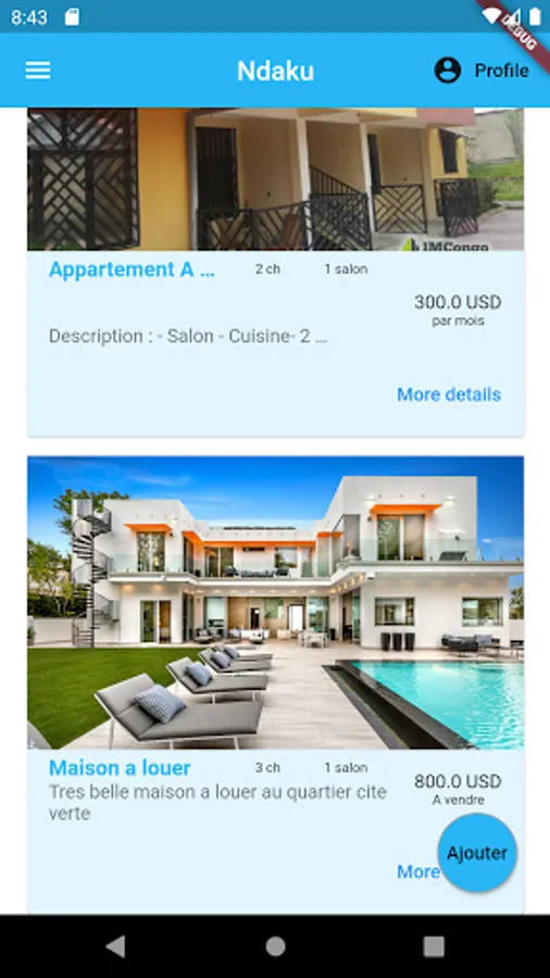 Ndaku is the reference for Congolese real estate, which you want to rent, sell, buy real estate in the Democratic Republic of the Congo, Ndaku is there to list all the real estate available in your region.
