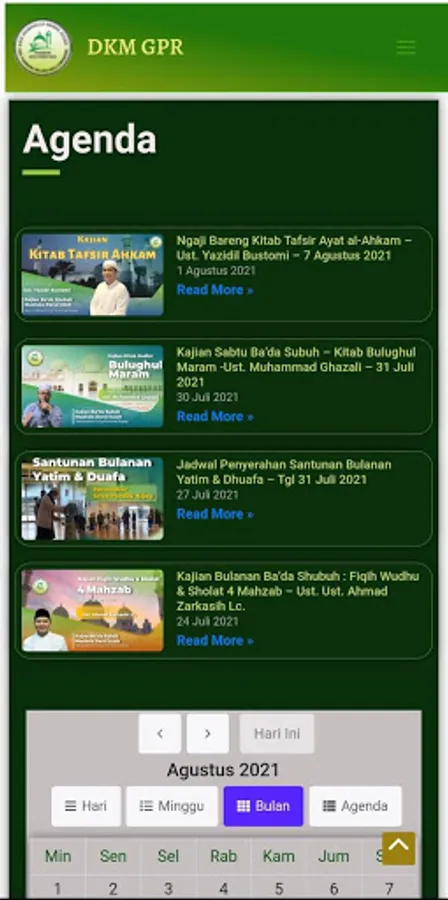 Contains the agenda and schedule of recitations carried out by DKM Musholla Darul Izzah